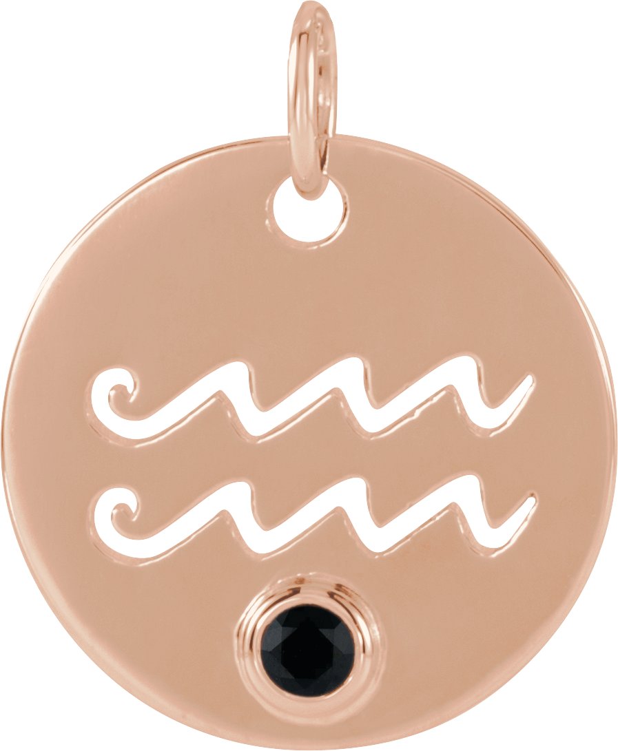 14K Rose Natural Black Spinel Aquarius Zodiac Pendant Ref 17886493