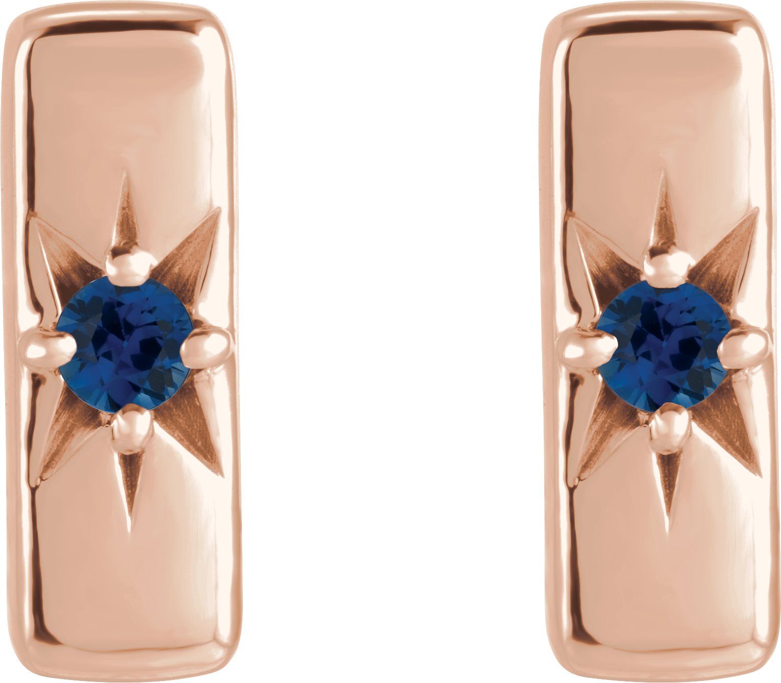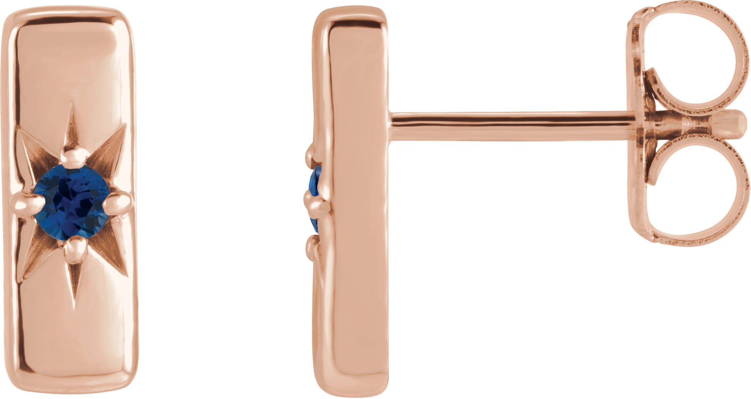 14K Rose Natural Blue Sapphire Starburst Bar Earrings Ref 16685653