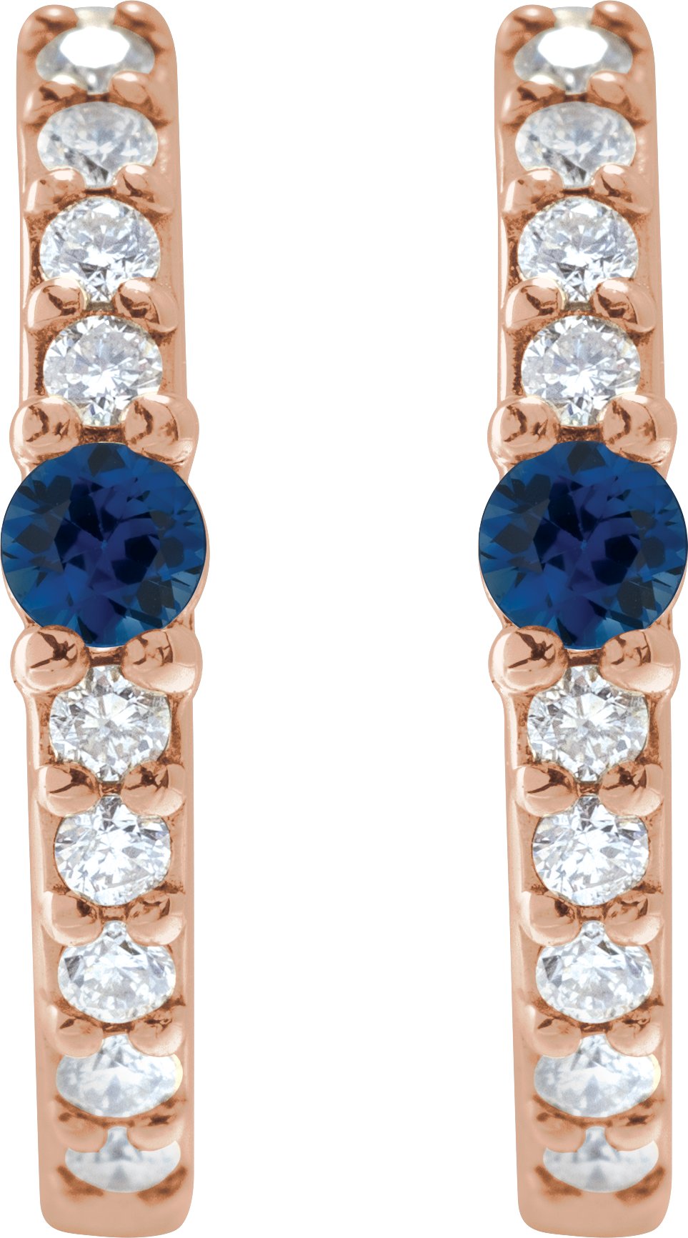 14K Rose Natural Blue Sapphire & 1/8 CTW Natural Diamond 13.6 mm Hoop Earring