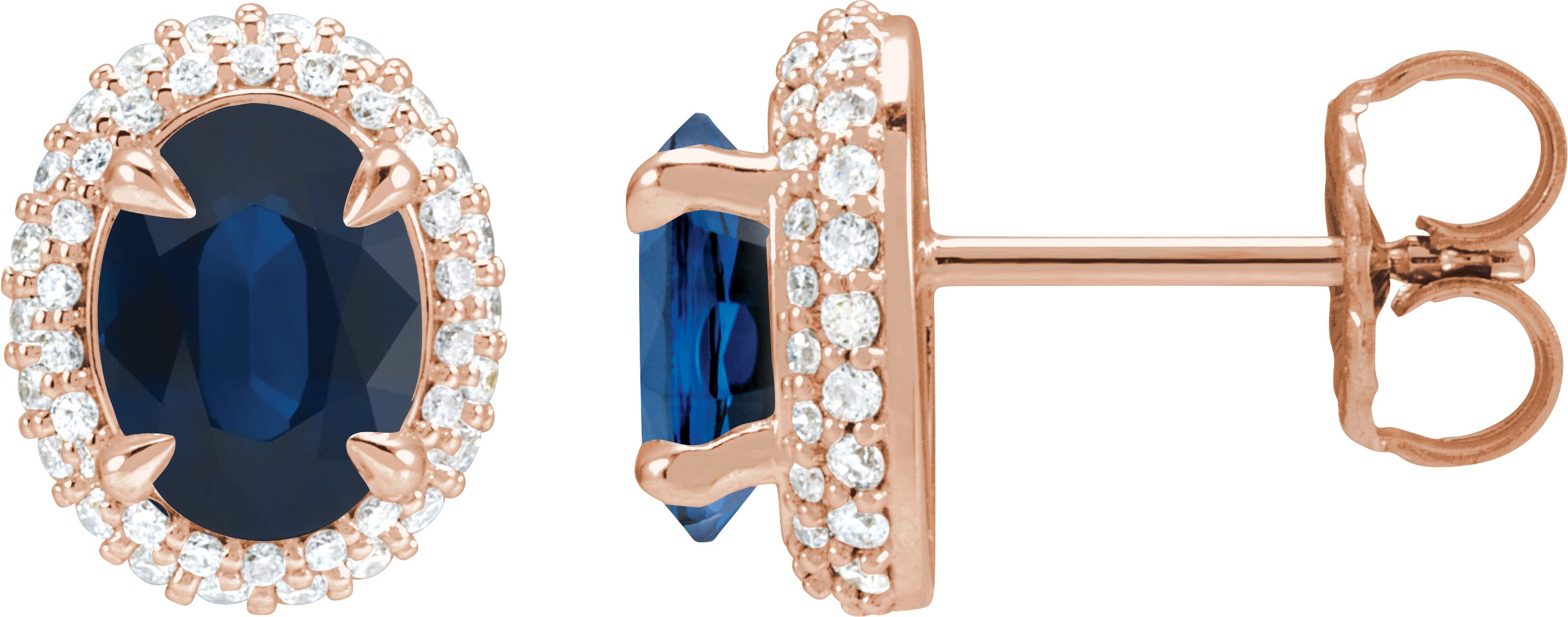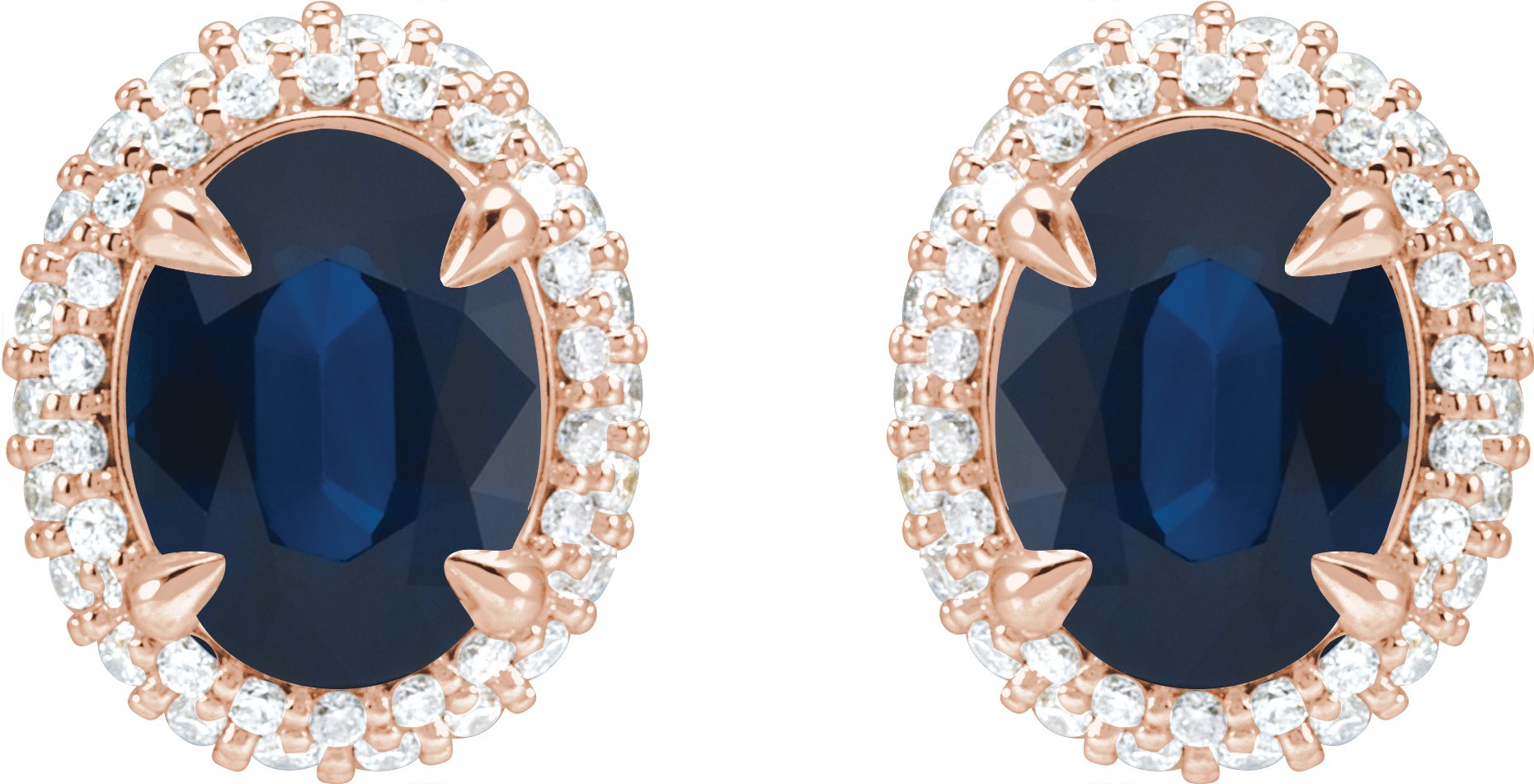 14K Rose Natural Blue Sapphire & 1/2 CTW Natural Diamond Double Halo-Style Earrings