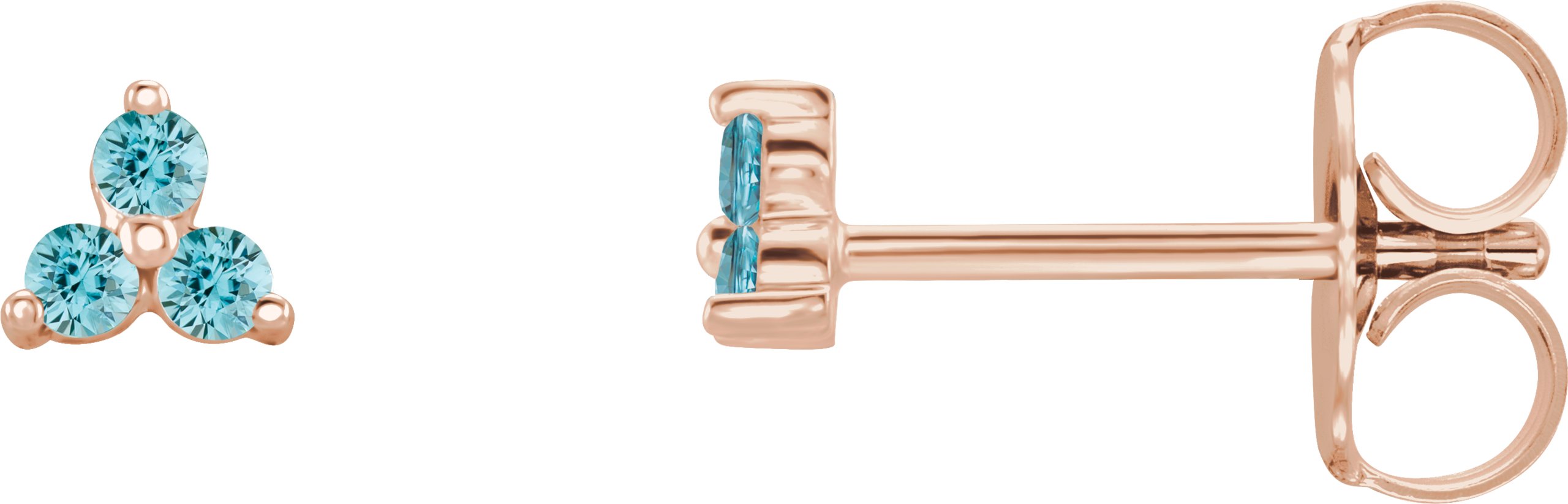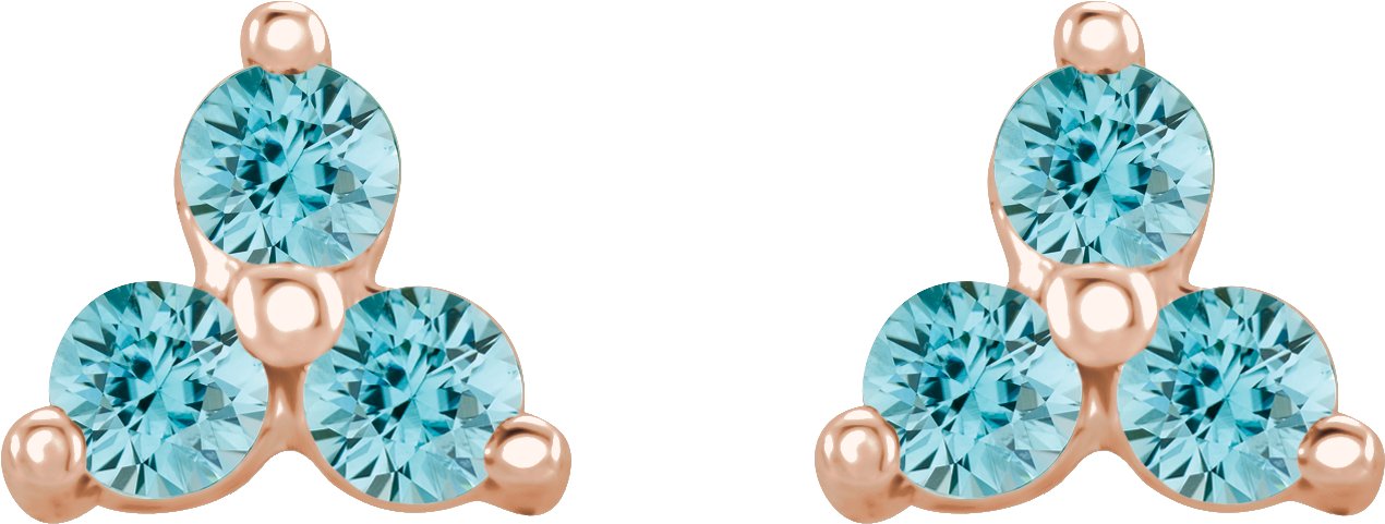 14K Rose Natural Blue Zircon Three Stone Earrings Ref 18414630