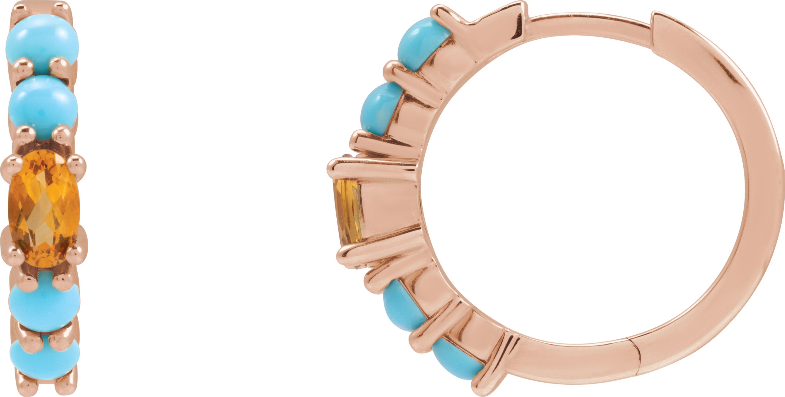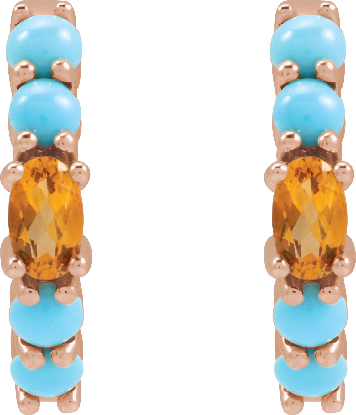 Description: Natural Citrine And Natural Turquoise Huggie Hoop Earrings
