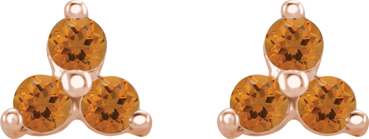 14K Rose Natural Citrine Three Stone Earrings Ref 18414615