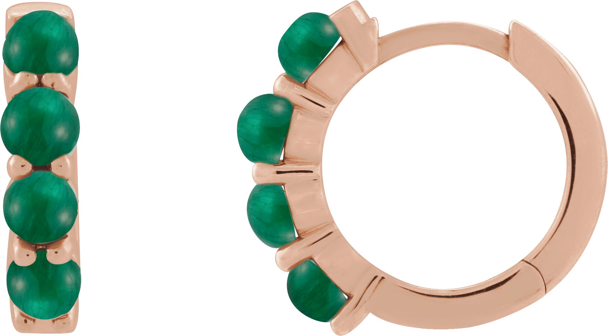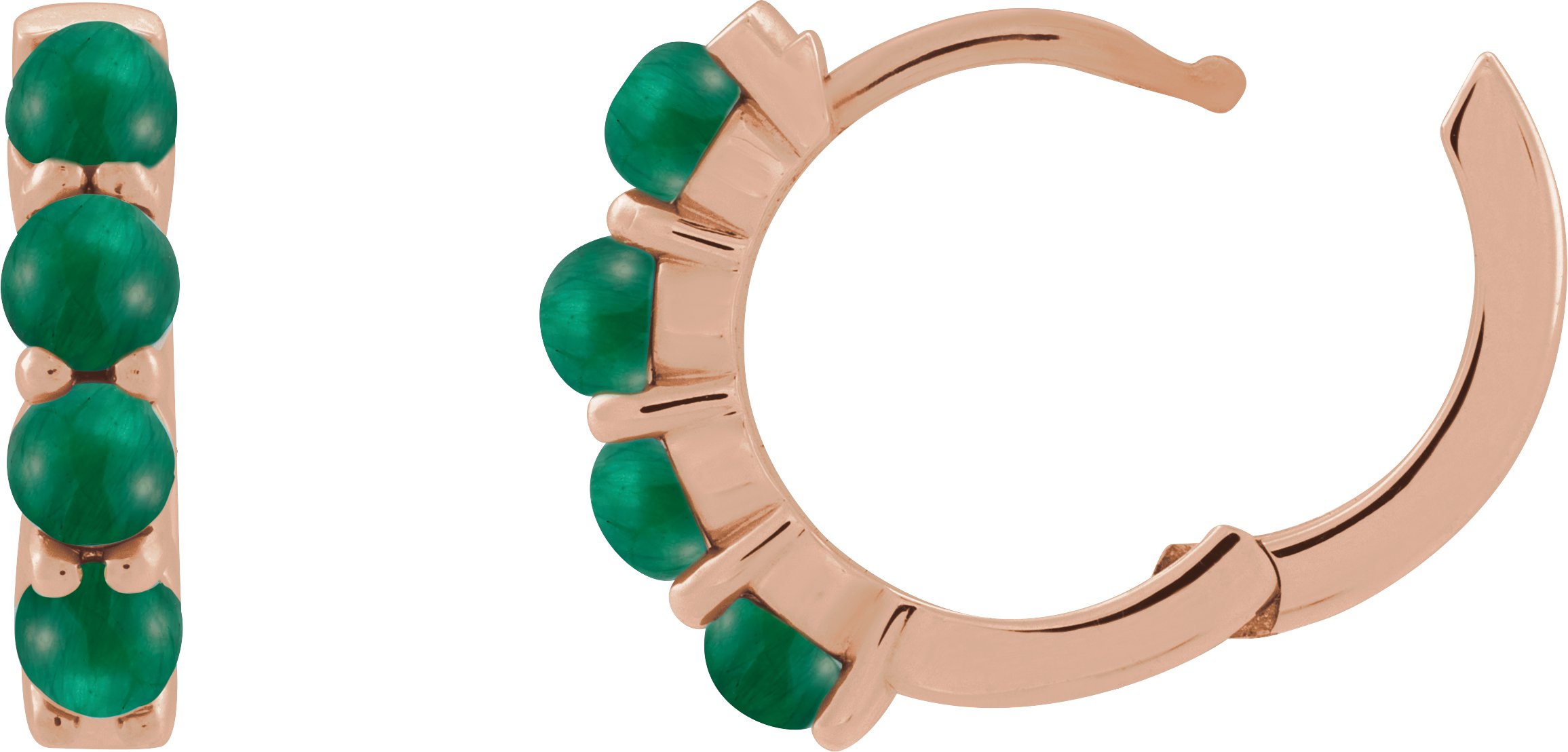 14K Rose Natural Emerald Cabochon 14.7 mm Huggie Hoop Earring