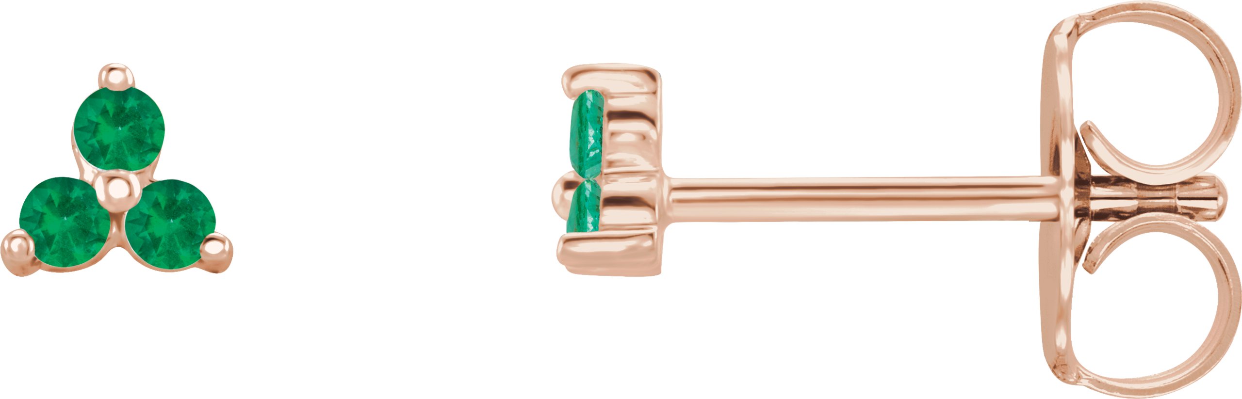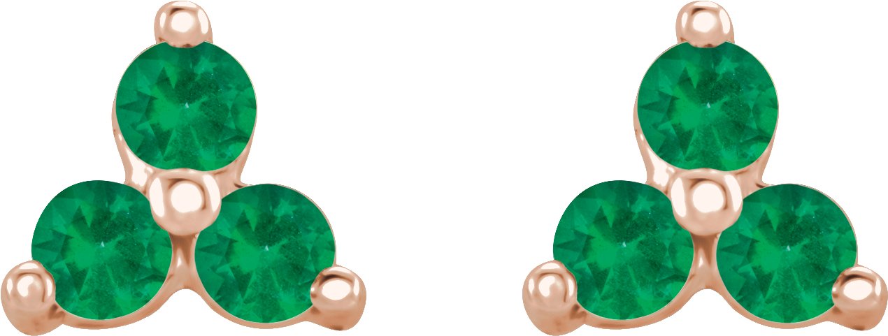14K Rose Natural Emerald Three Stone Earrings Ref 18414595