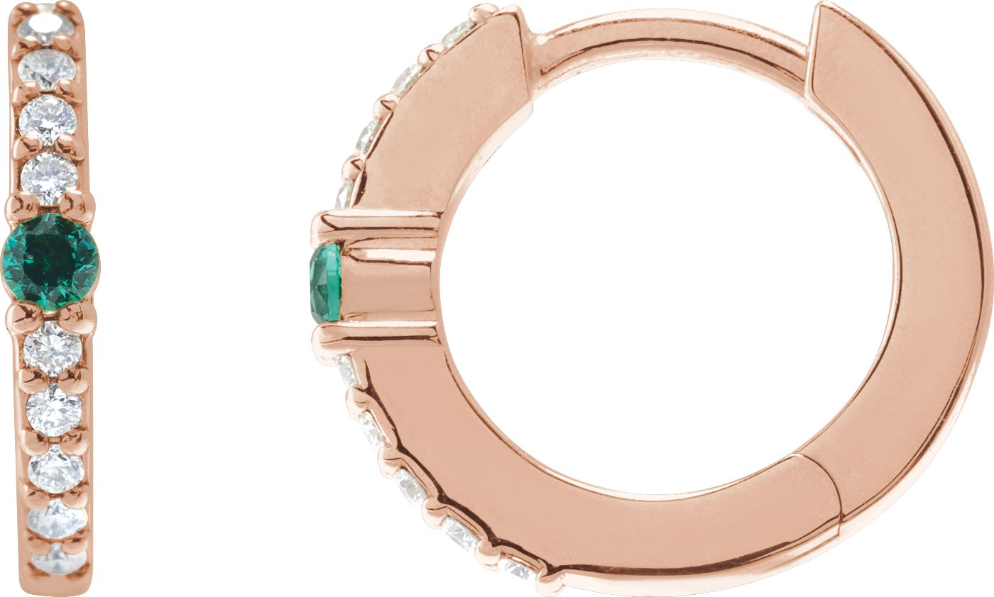 14K Rose Natural Emerald & 1/8 CTW Natural Diamond 13.6 mm Hoop Earring