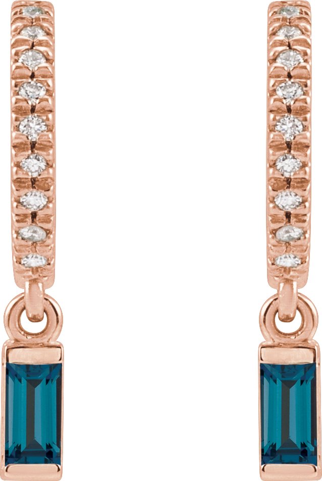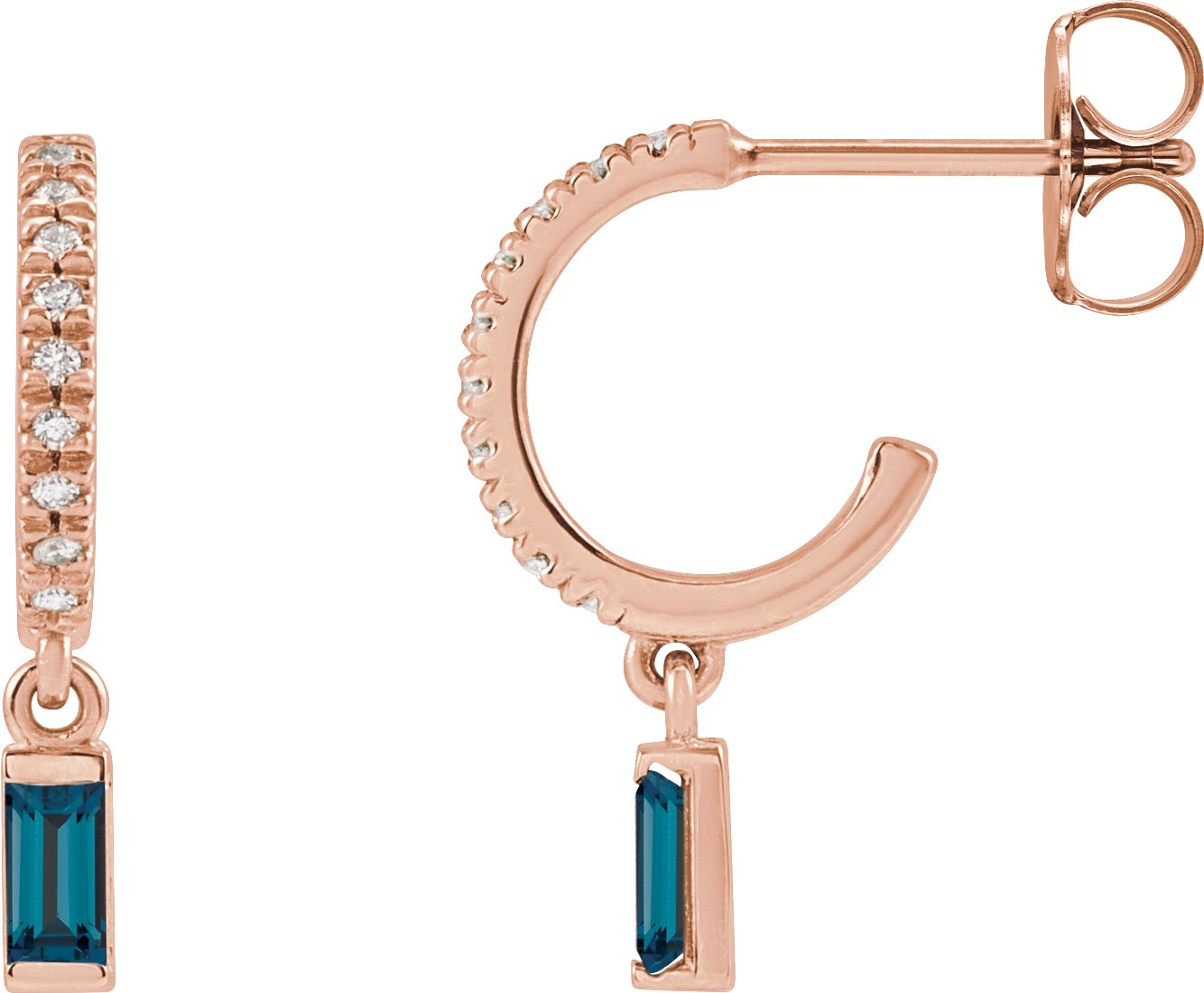 14K Rose Natural London Blue Topaz and .08 CTW Natural Diamond French Set Hoop Earrings Ref 18164819