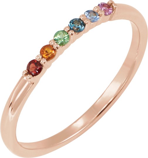 14K Rose Natural Multi Gemstone Rainbow Stackable Ring Ref 19716523