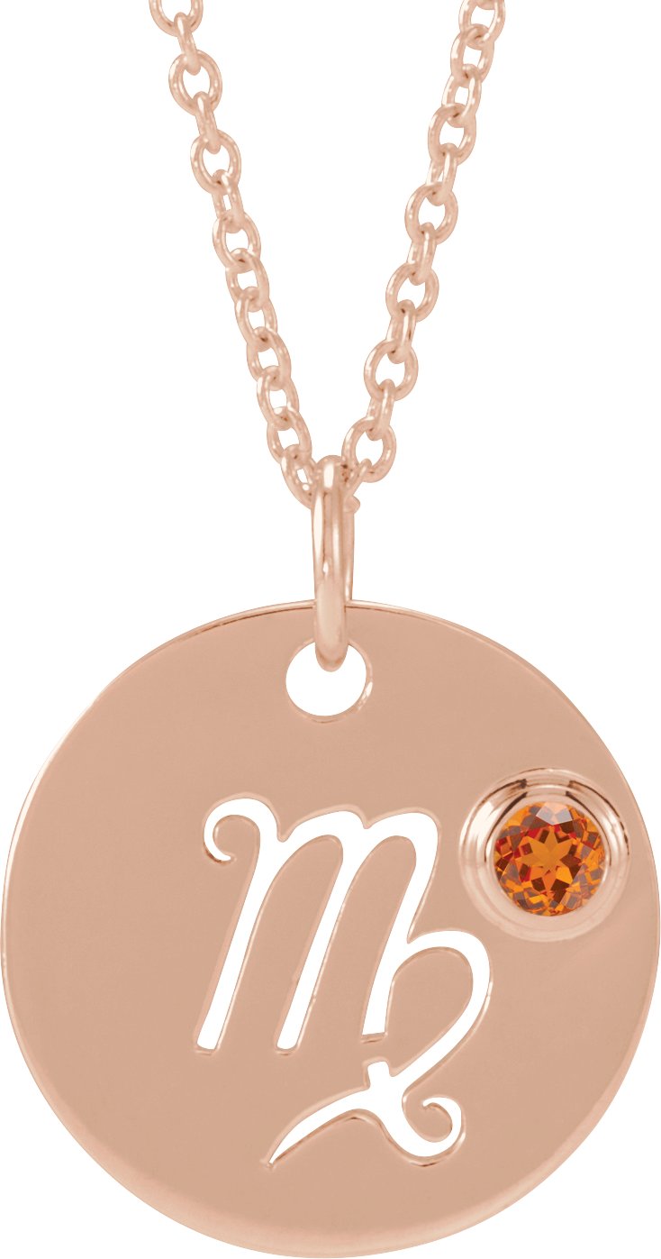 14K Rose Natural Orange Garnet Virgo Zodiac 16 to 18 inch Necklace Ref 17886618