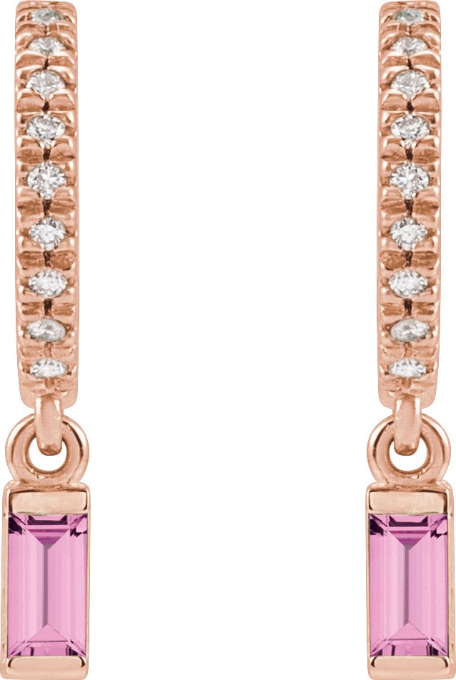 Description: Natural Pink Sapphire And .08 CTW Natural Diamond French-Set Dangle Hoop Earrings