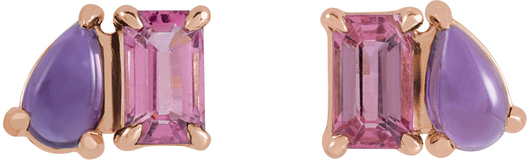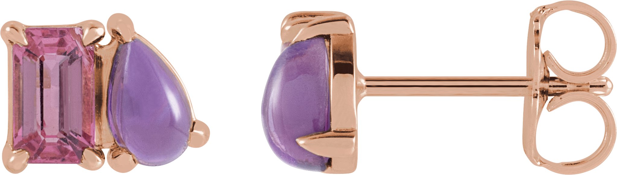14K Rose Natural Pink Tourmaline & Natural Amethyst Two-Stone Stud Earrings