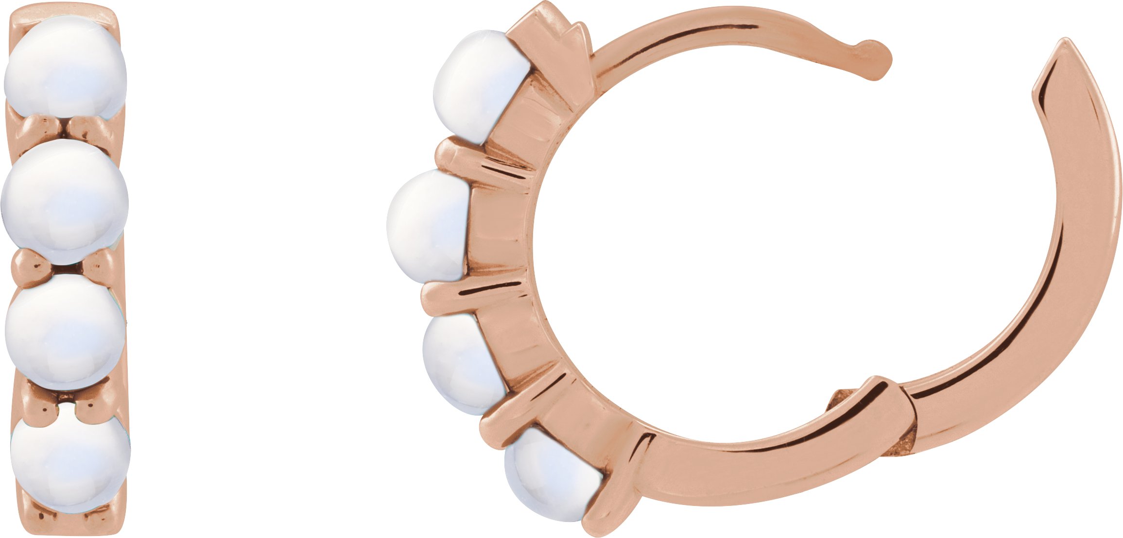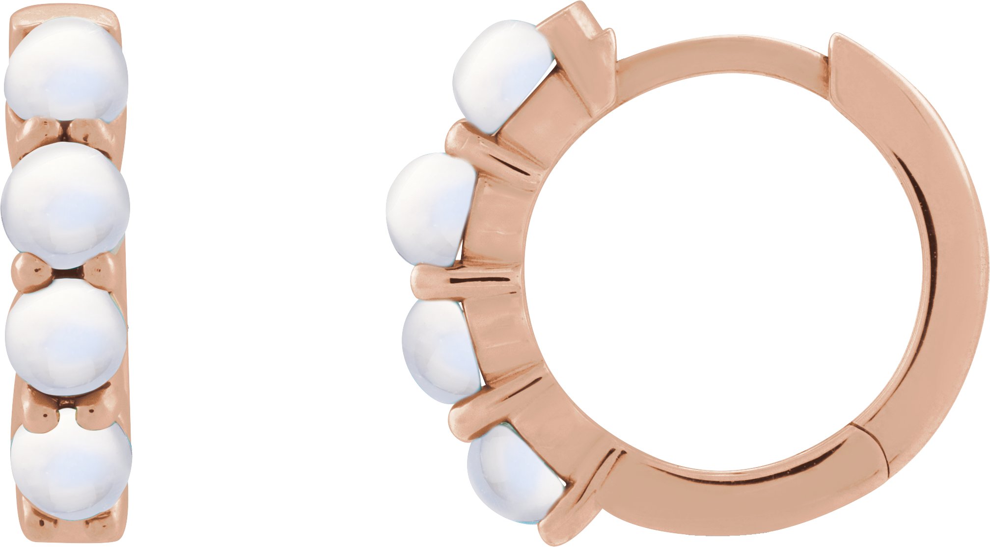 14K Rose Natural Rainbow Moonstone Cabochon 14.7 mm Huggie Hoop Earring