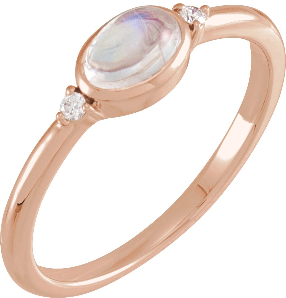 14K Rose Natural Rainbow Moonstone and .03 CTW Natural Diamond Ring Ref 18830474