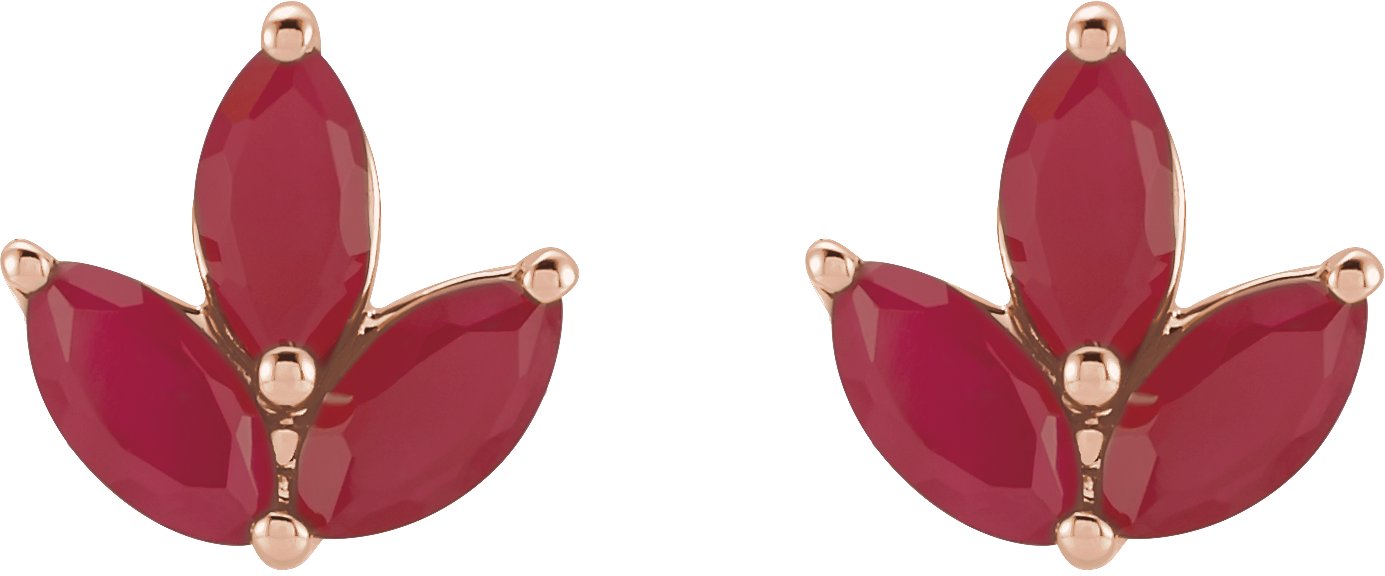14K Rose Natural Ruby Cluster Earrings Ref 18620108