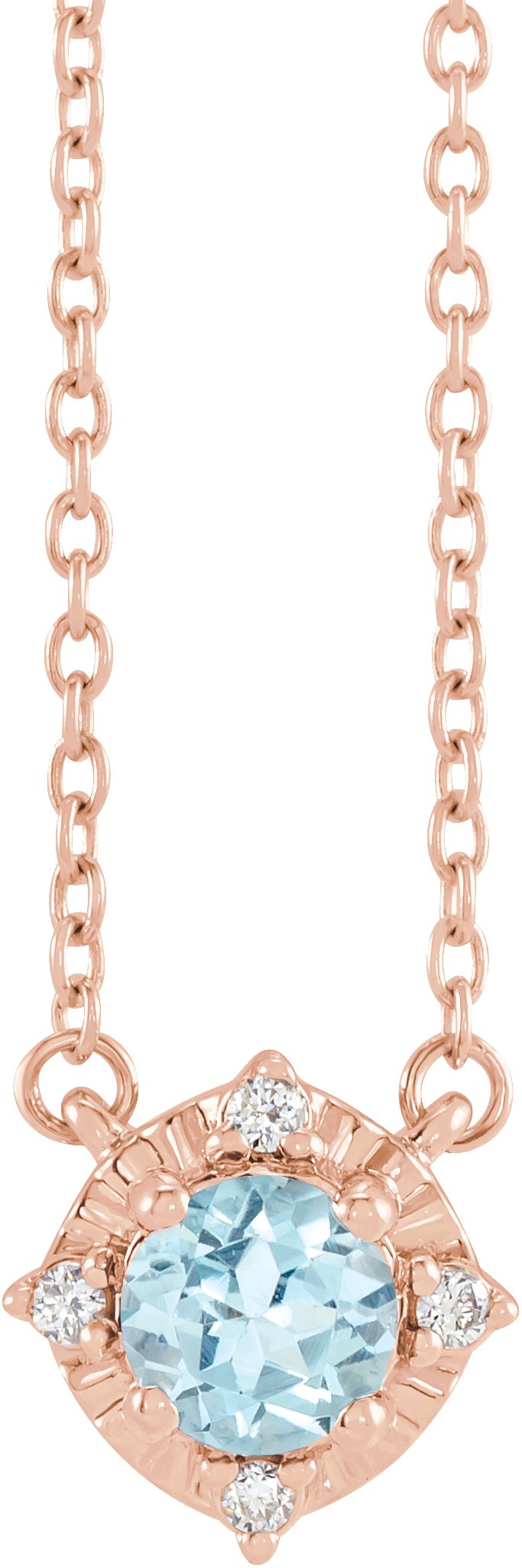 14K Rose Natural Sky Blue Topaz and .04 CTW Natural Diamond Halo Style 18 inch Necklace Ref 17917683