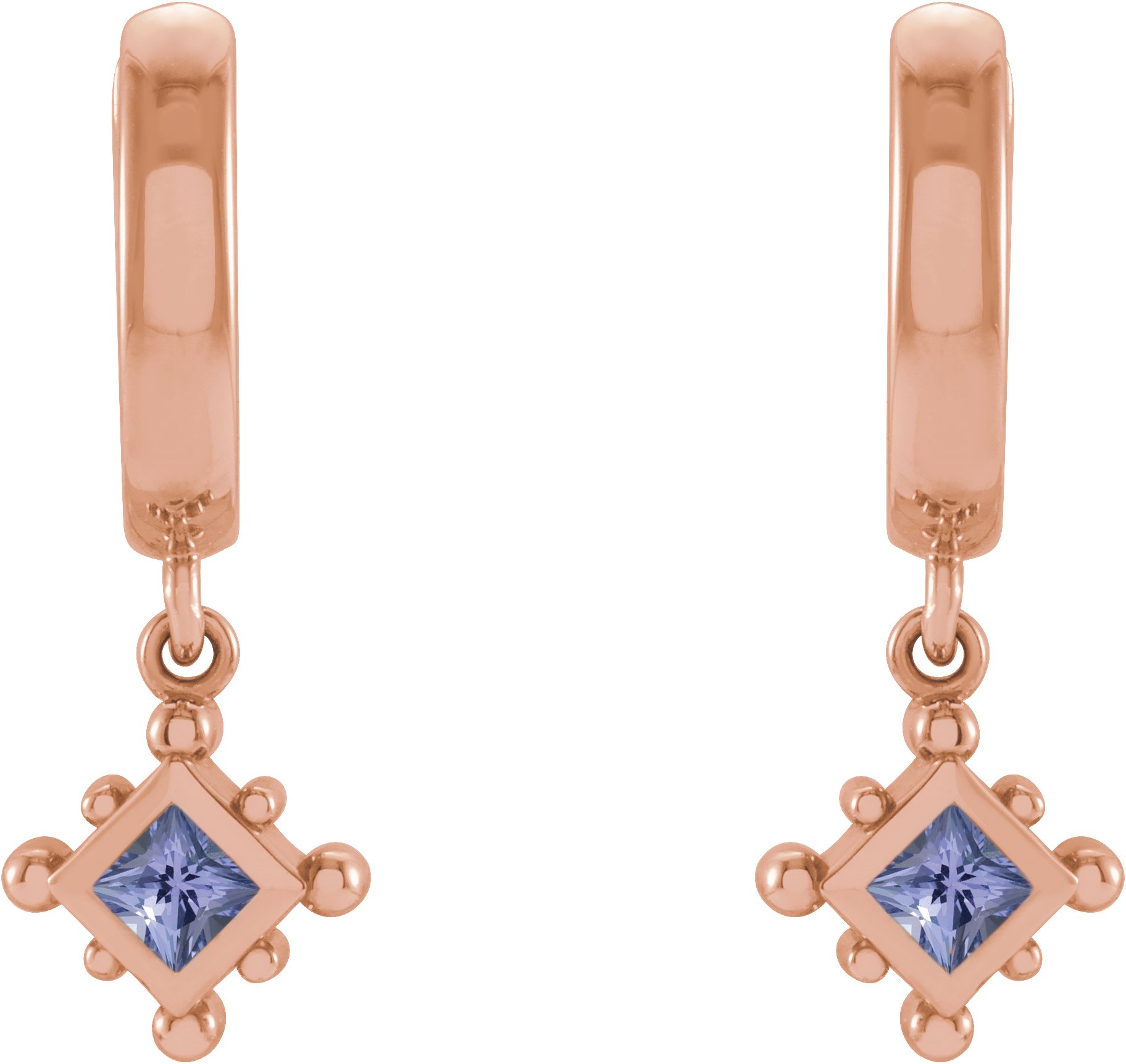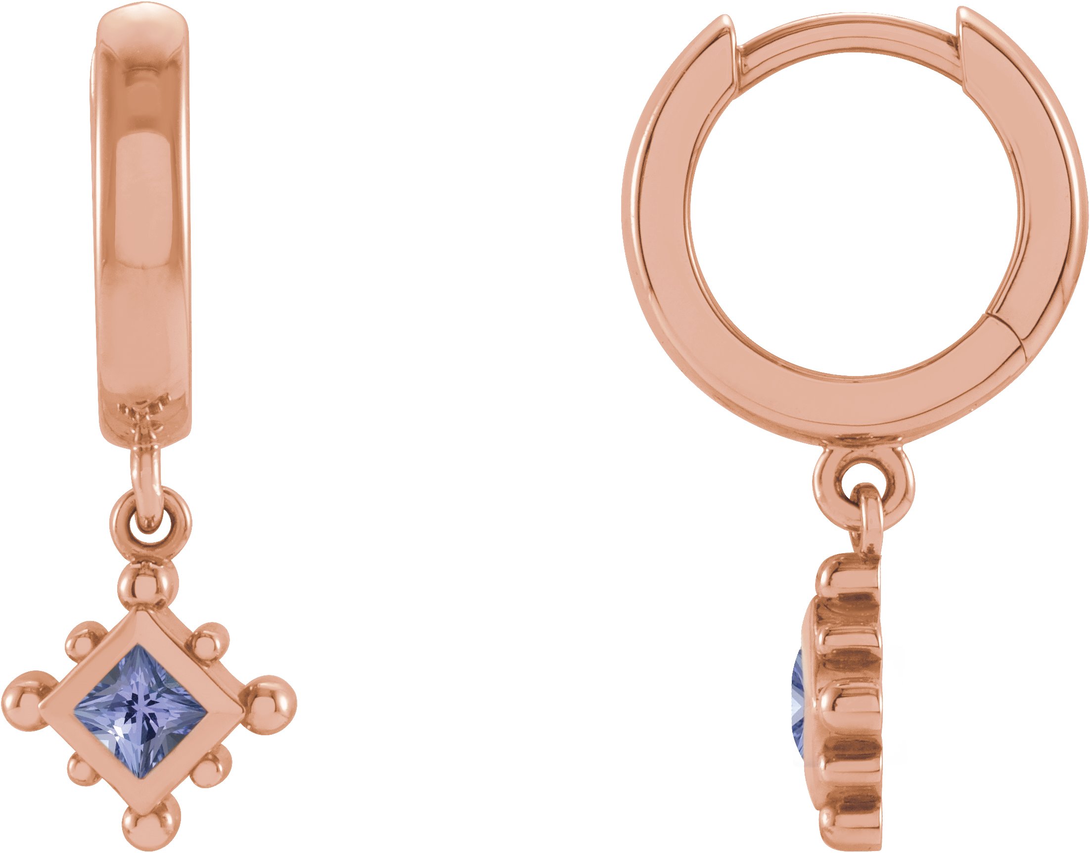14K Rose Natural Tanzanite Beaded Bezel Set Hoop Earrings Ref 18069070