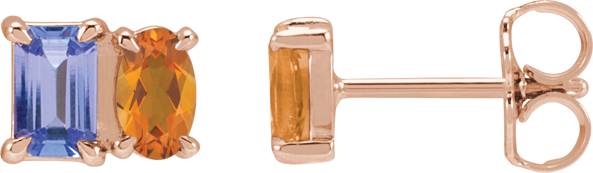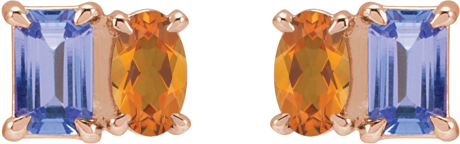 14K Rose Natural Tanzanite & Natural Citrine Two-Stone Stud Earrings