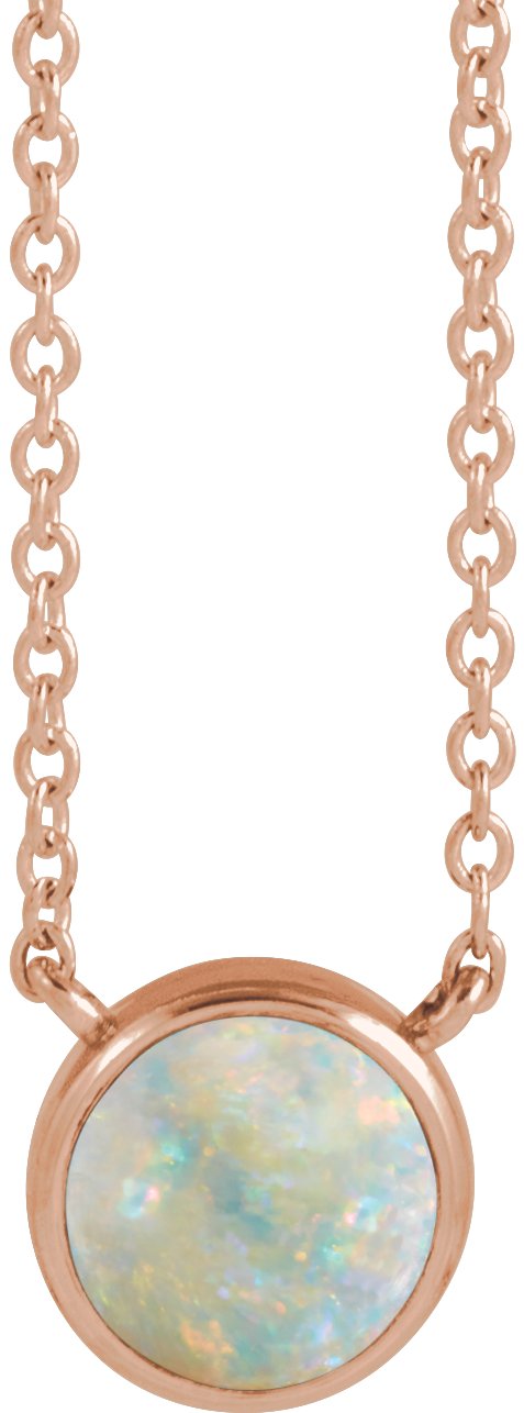 Description: Natural White Opal Cabochon Bezel-Set Necklace