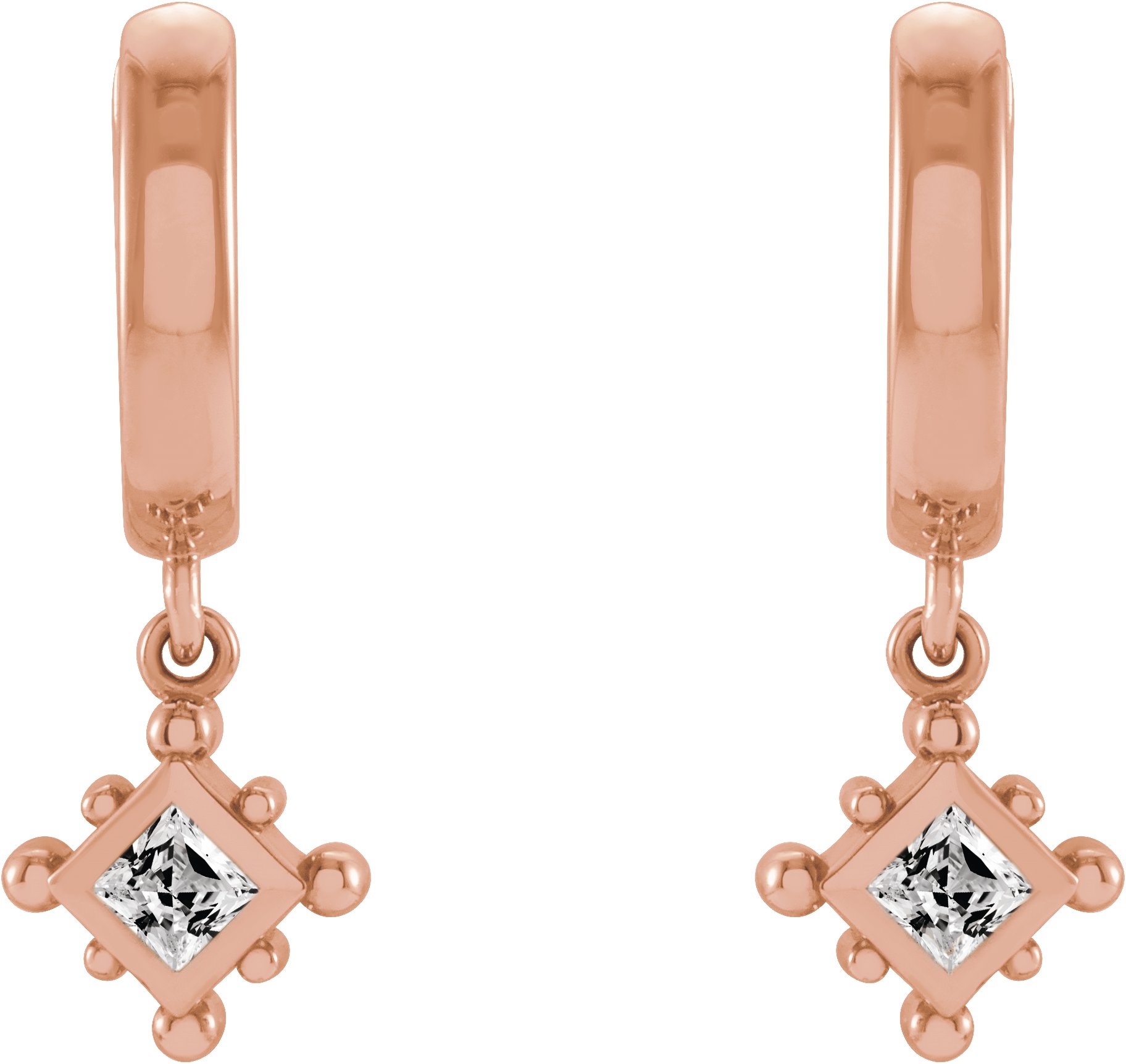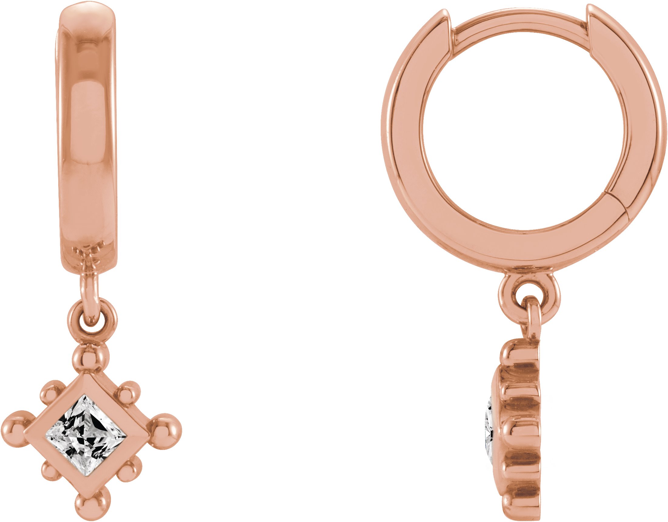 14K Rose Natural White Sapphire Beaded Bezel Set Hoop Earrings Ref 18069119