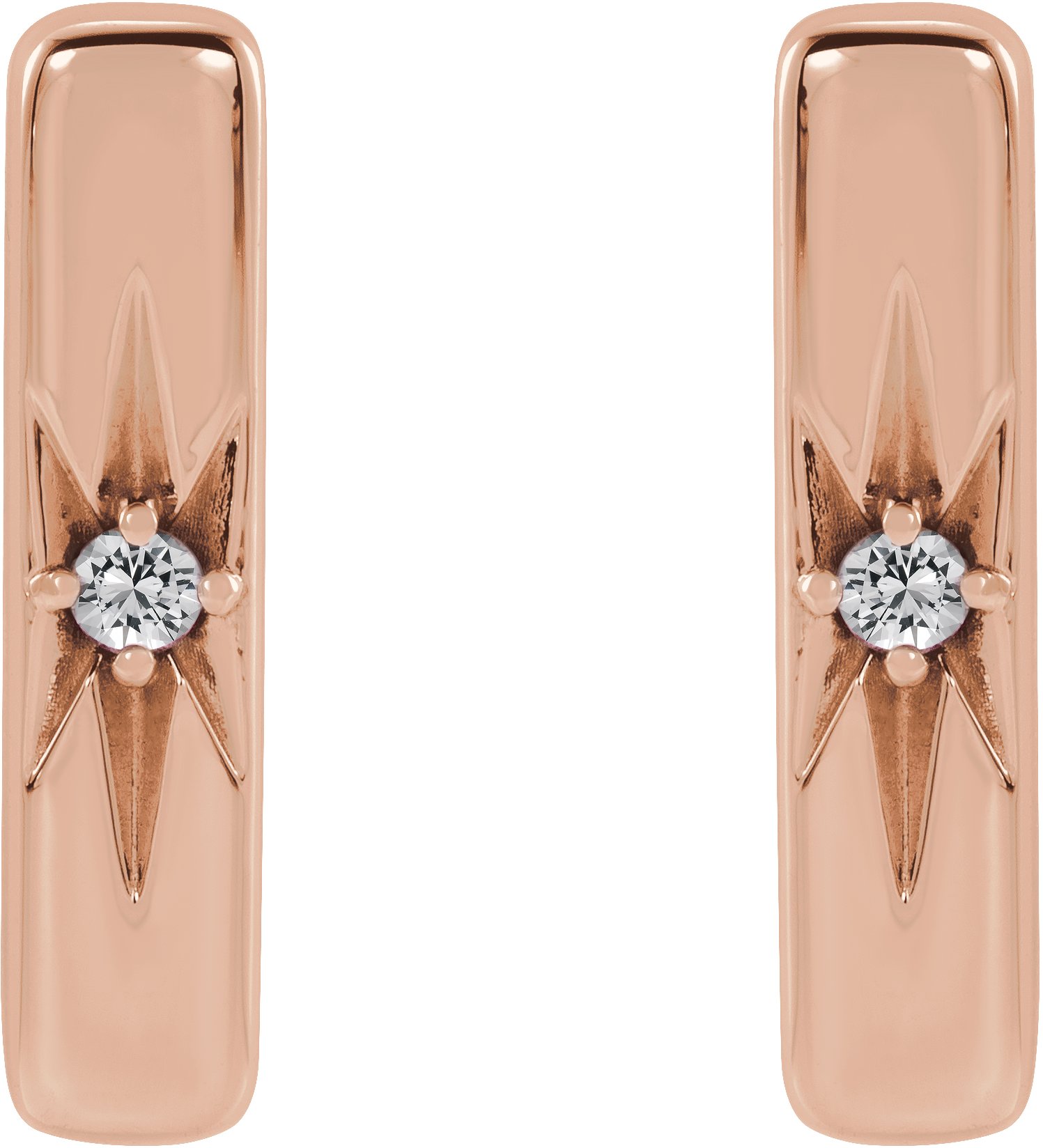 14K Rose Natural White Sapphire Starburst Bar Earrings Ref 17342804
