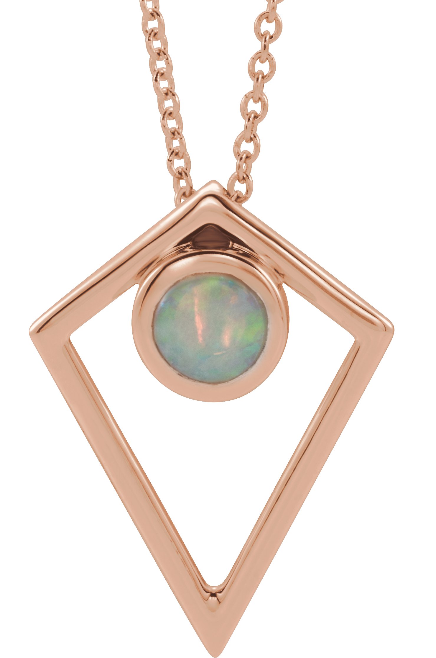 14K Rose Opal Cabochon Pyramid 16 18" Necklace Ref. 14735156