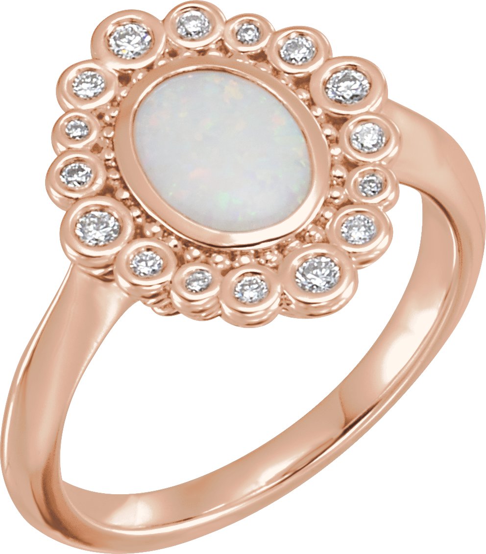 14K Rose Opal and .17 CTW Diamond Ring