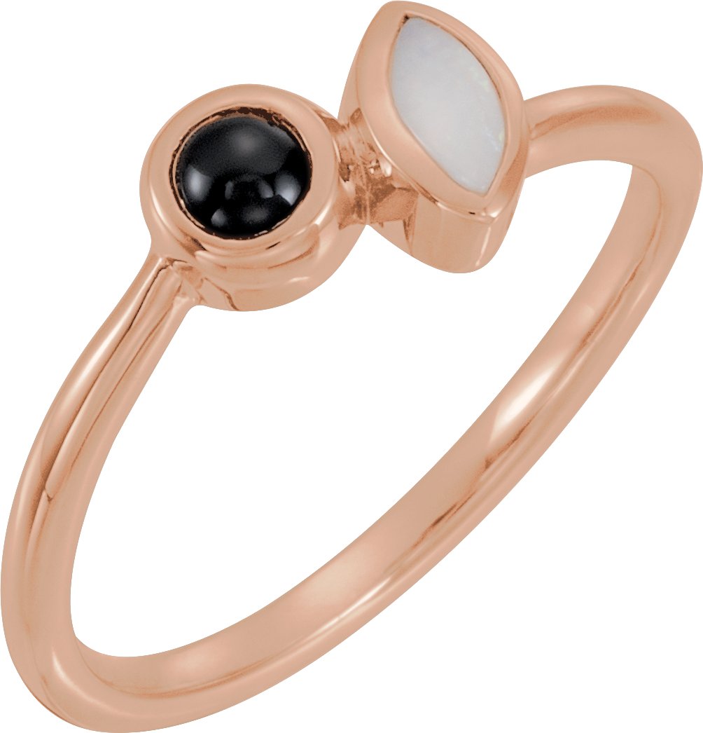 14K Rose Opal and Onyx Ring