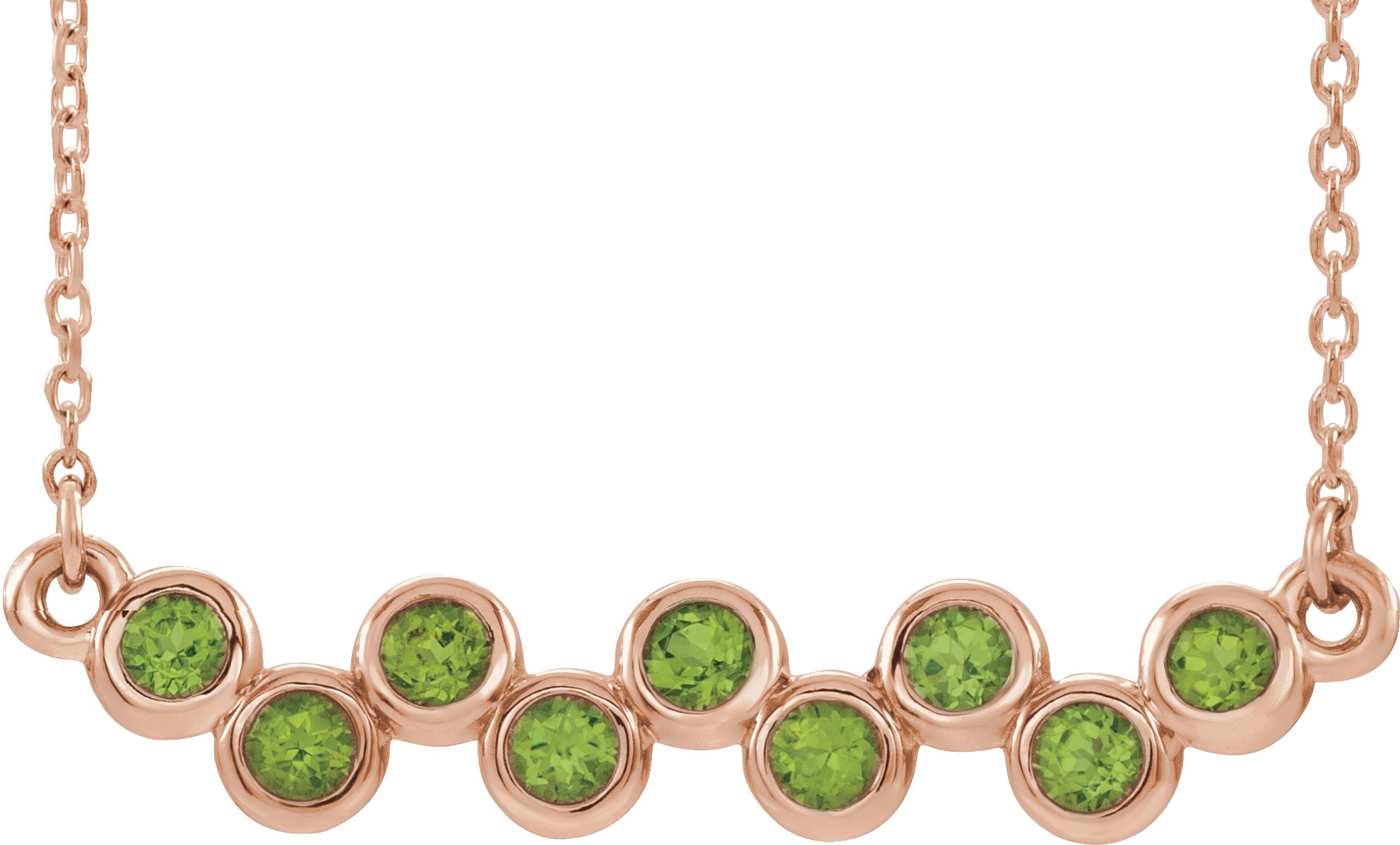 14K Rose Peridot Bezel Set Bar 16 18" Necklace Ref. 14200008