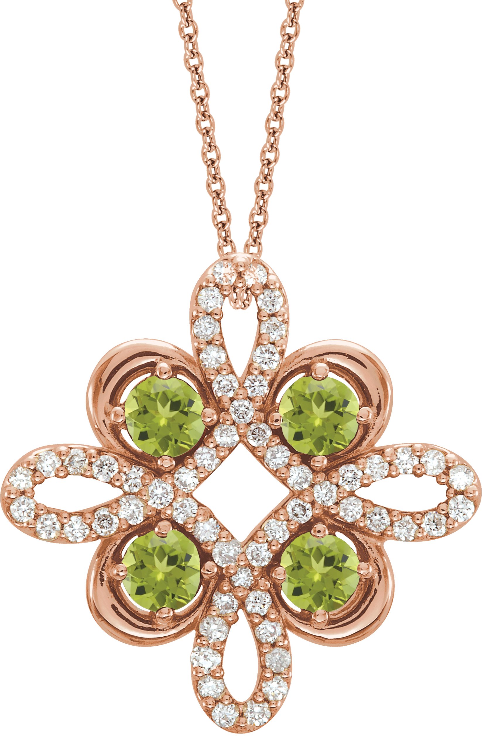 14K Rose Peridot and .17 CTW Diamond Clover 18 inch Necklace