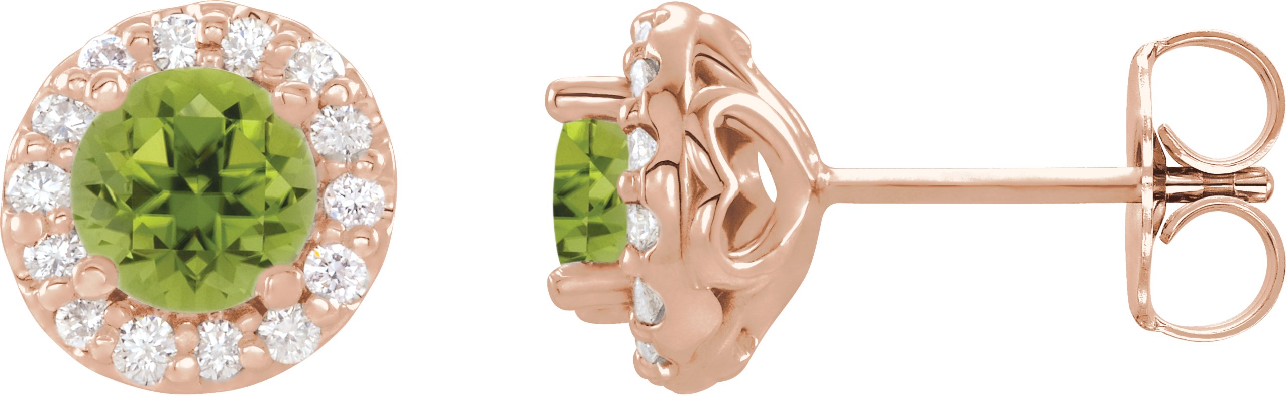 14K Rose Peridot & 1/4 CTW Diamond Earrings