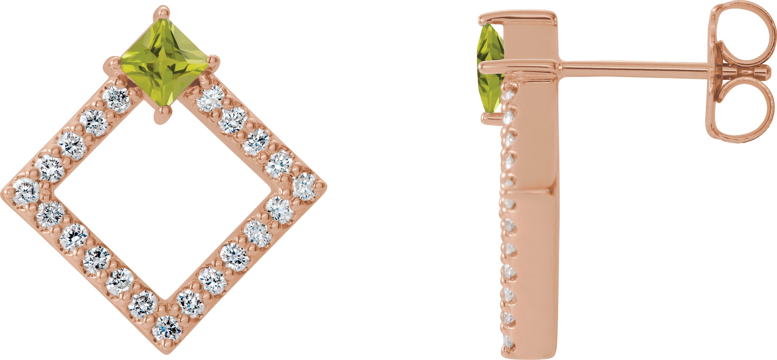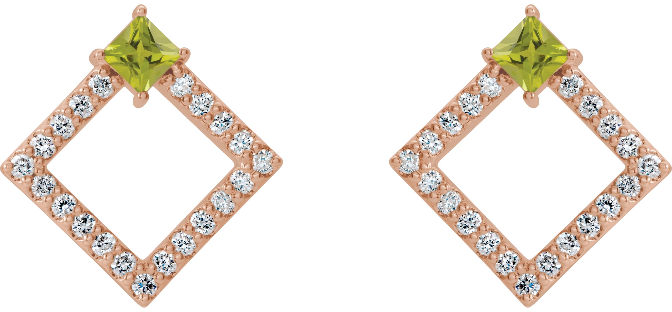 14K Rose Peridot & 1/3 CTW Diamond Earrings