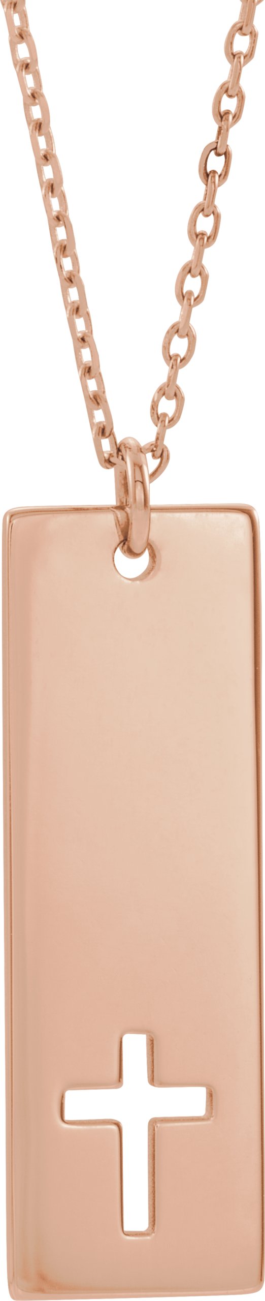 14K Rose Pierced Cross Engravable Bar 16 18" Necklace Ref. 13702701