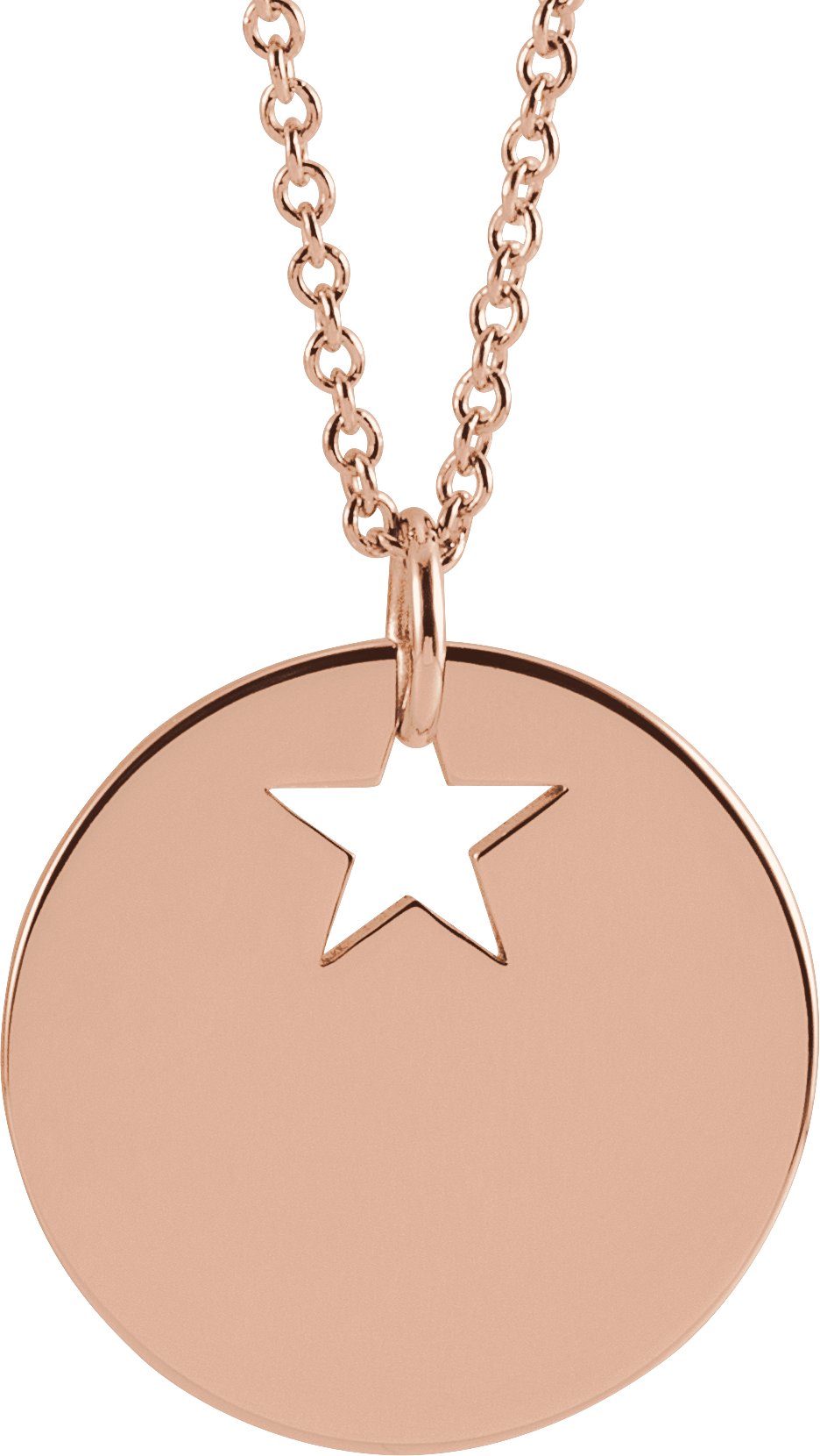 14K Rose Pierced Star 15 mm Disc 16 18" Necklace Ref. 17031105