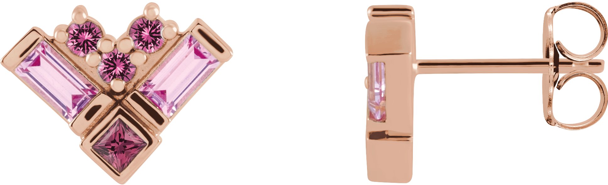 14K Rose Pink Multi Gemstone Cluster Earrings