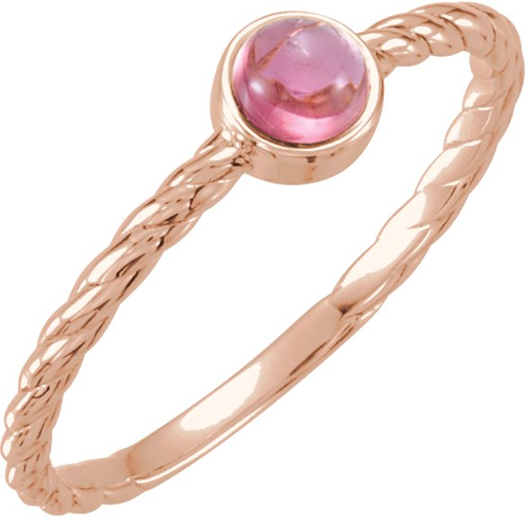Description: Genuine Pink Tourmaline Cabochon Rope Ring