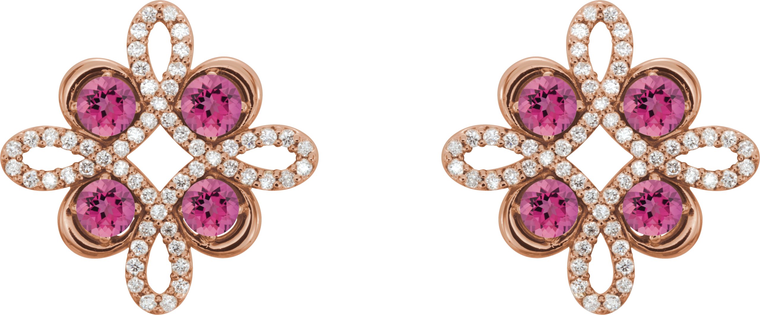 14K Rose Pink Tourmaline and .25 CTW Diamond Earrings