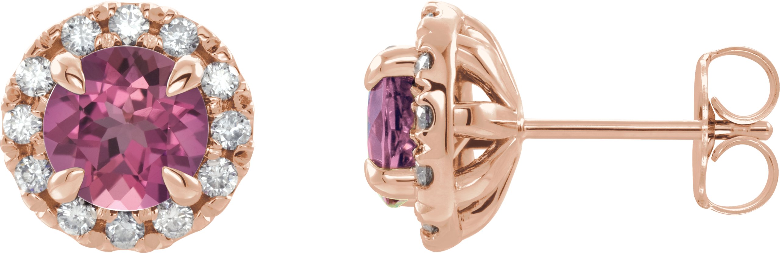 14K Rose Pink Tourmaline and .33 CTW Diamond Earrings