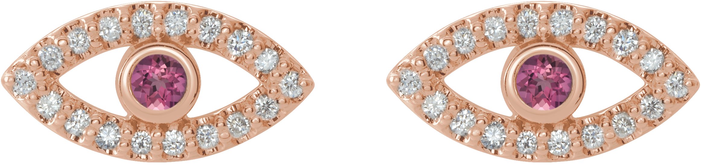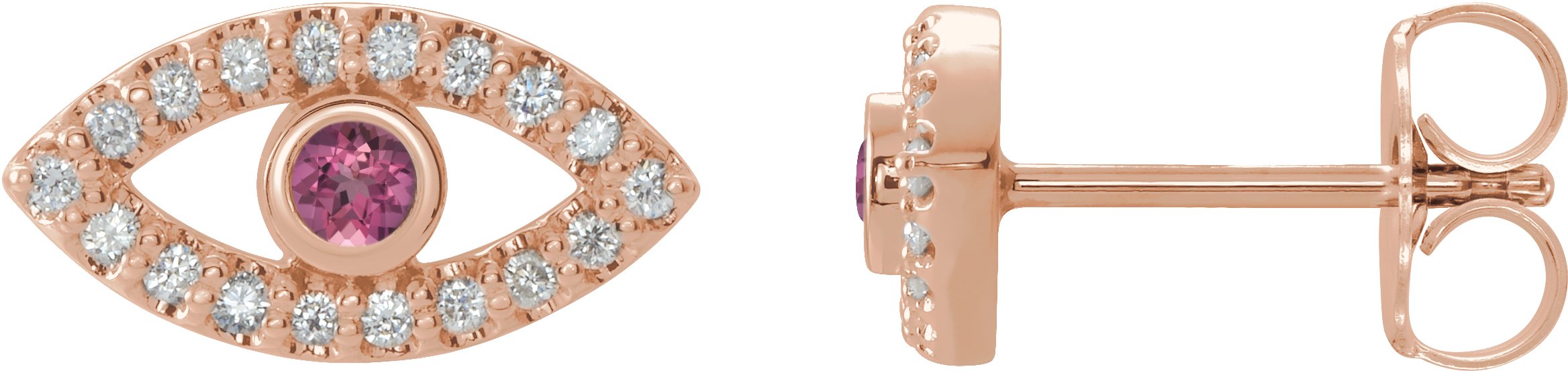 14K Rose Pink Tourmaline & White Sapphire Earrings