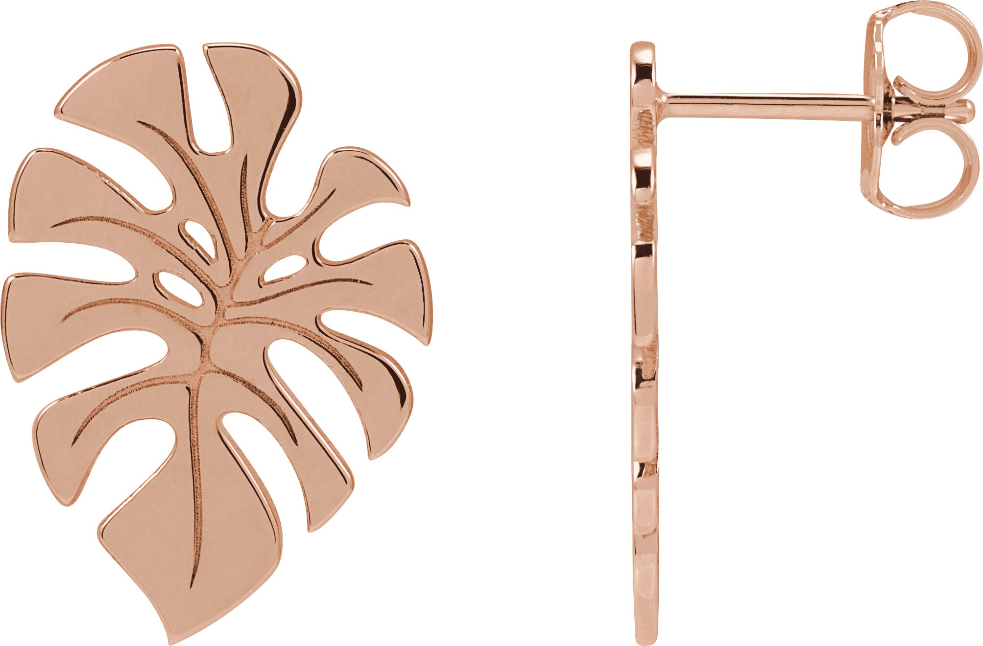 14K Rose Right Monstera Leaf Stud Earring