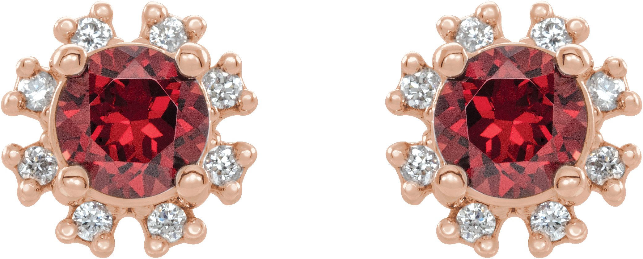 14K Rose Ruby and .20 CTW Diamond Earrings