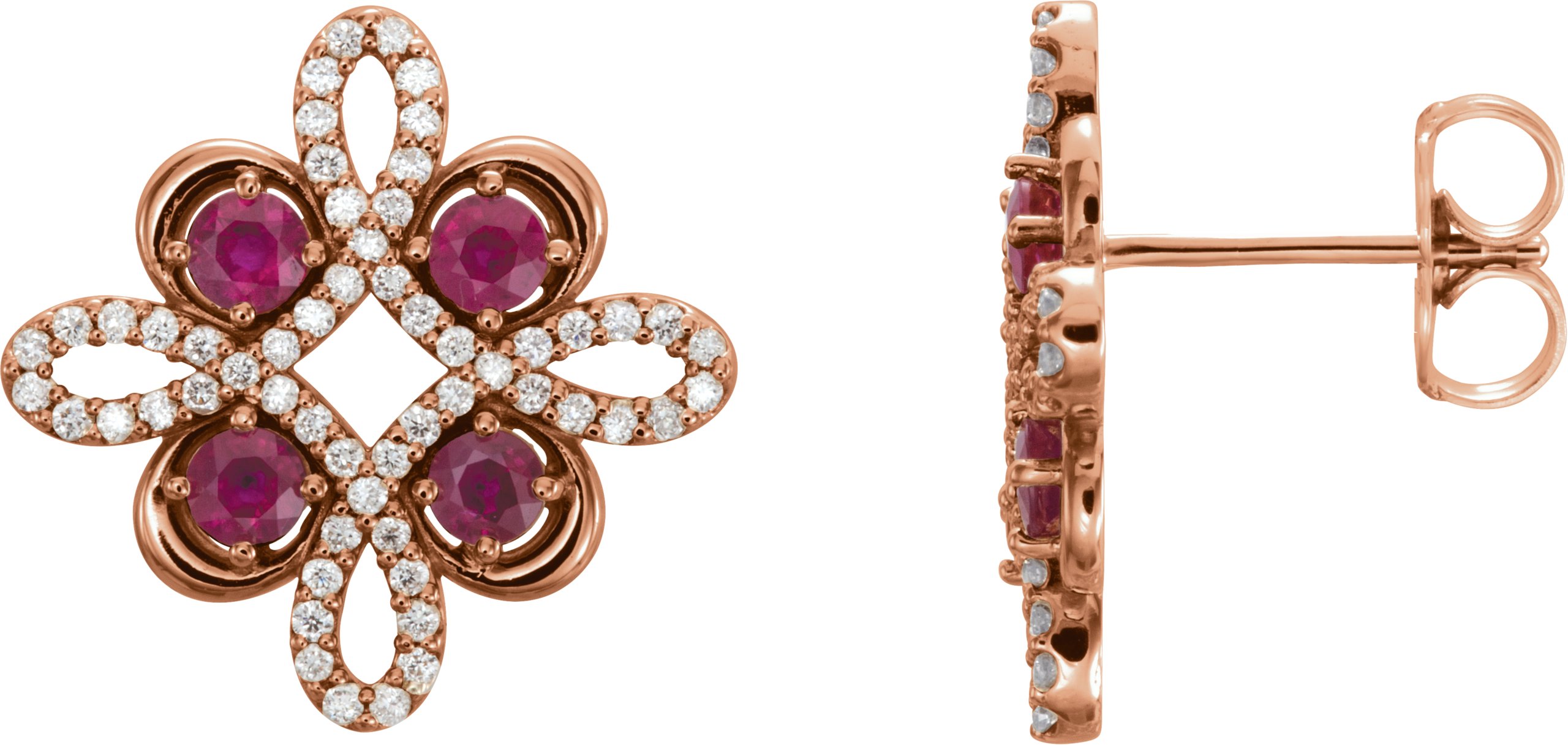 14K Rose Ruby and .25 CTW Diamond Earrings