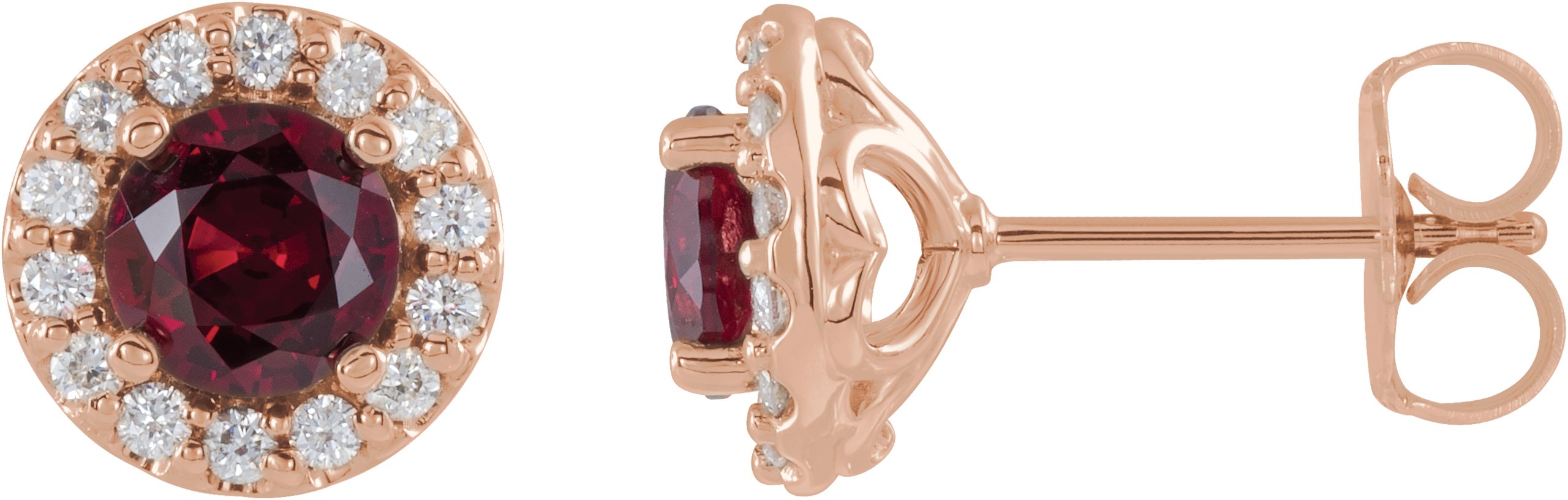 14K Rose Ruby & 1/4 CTW Diamond Earrings