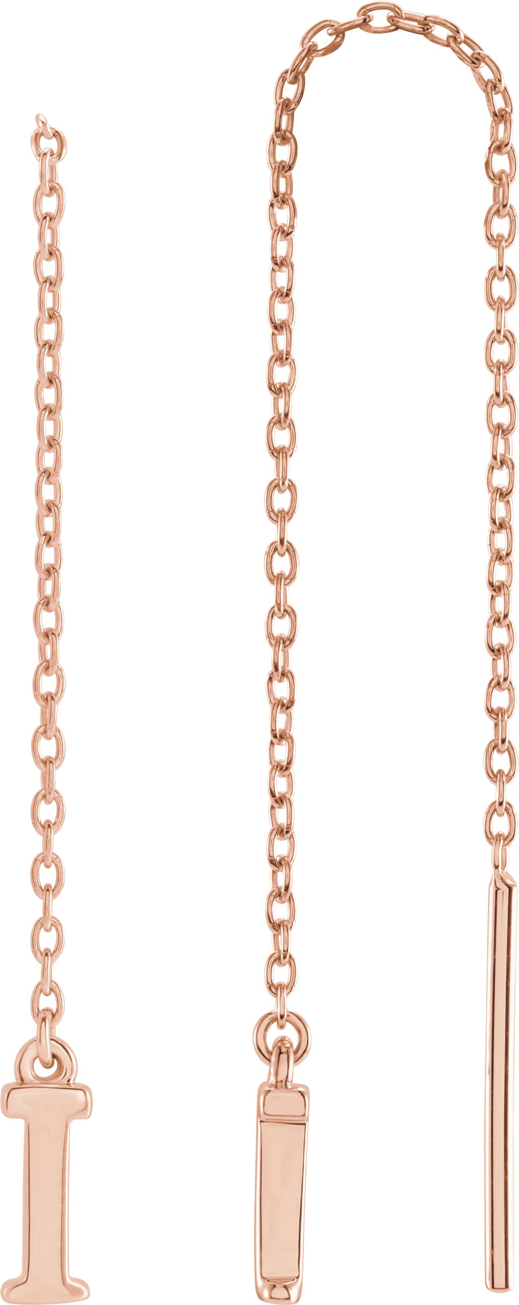 14K Rose Single Initial I Chain Earring