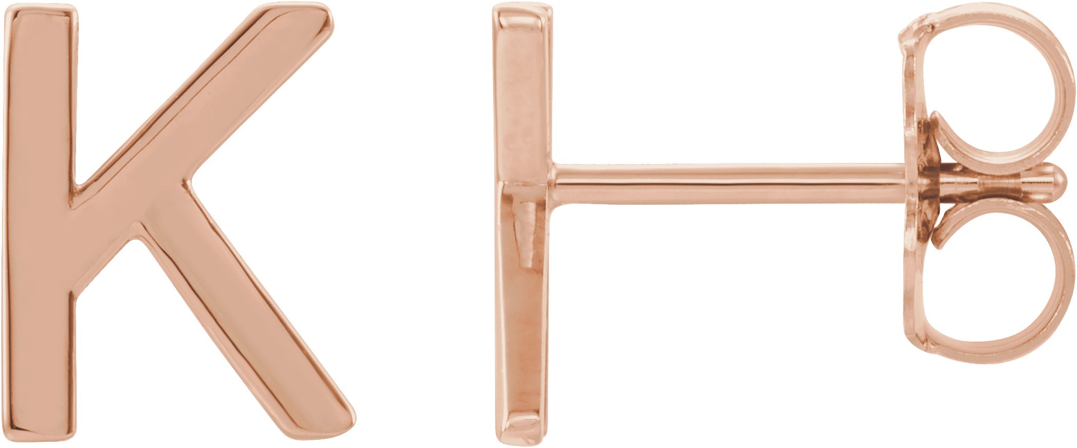 14K Rose Single Initial K Earring