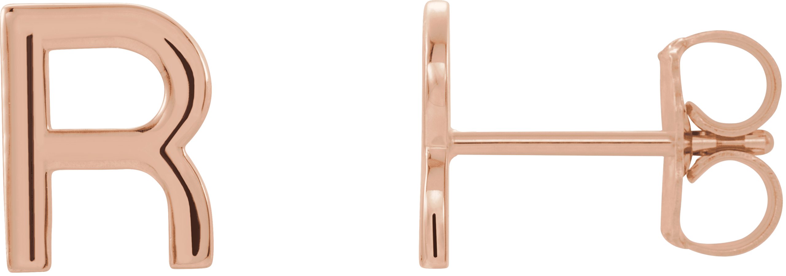 14K Rose Single Initial R Earring