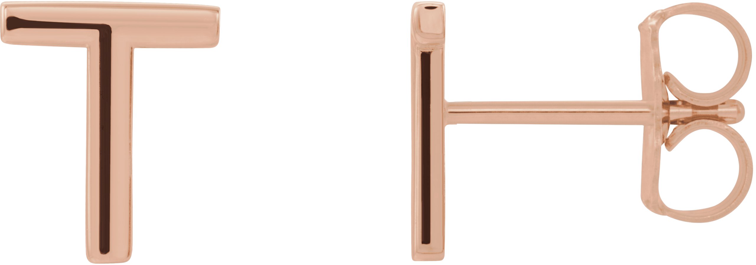 14K Rose Single Initial T Earring
