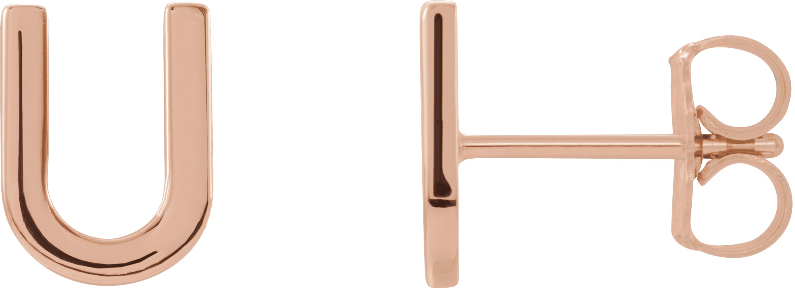 14K Rose Single Initial U Earring