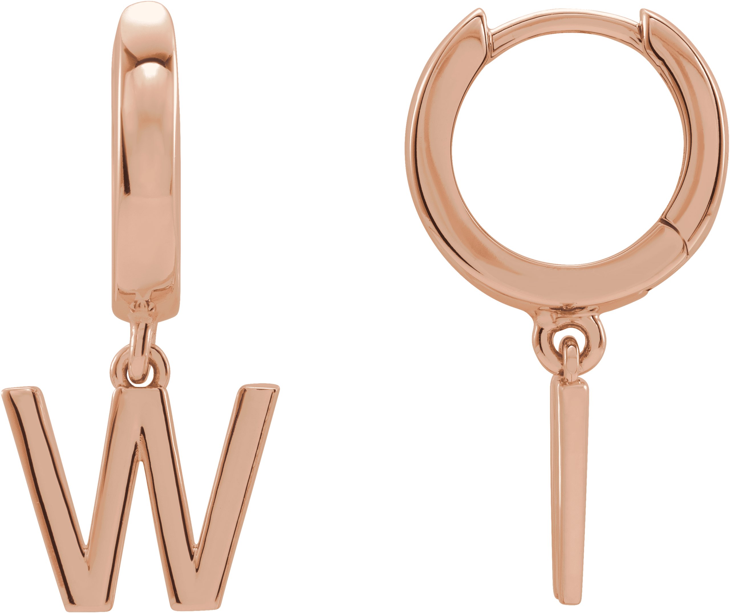 14K Rose Single Initial W Earring
