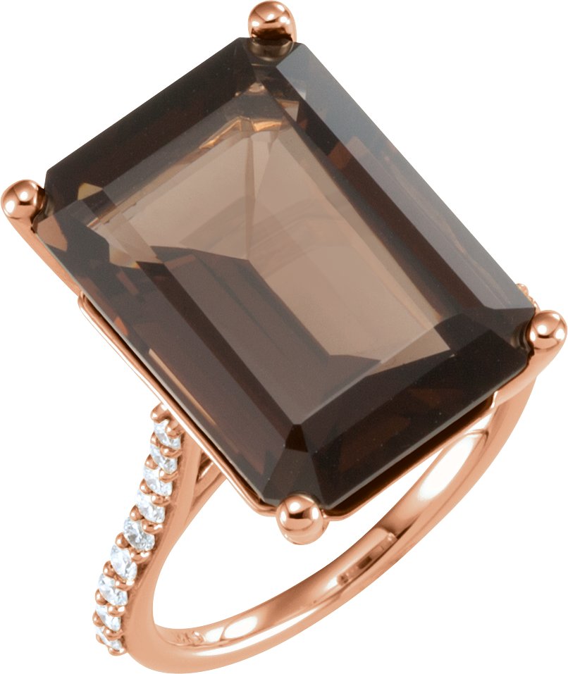 14K Rose Smoky Quartz & 1/4 CTW Diamond Ring