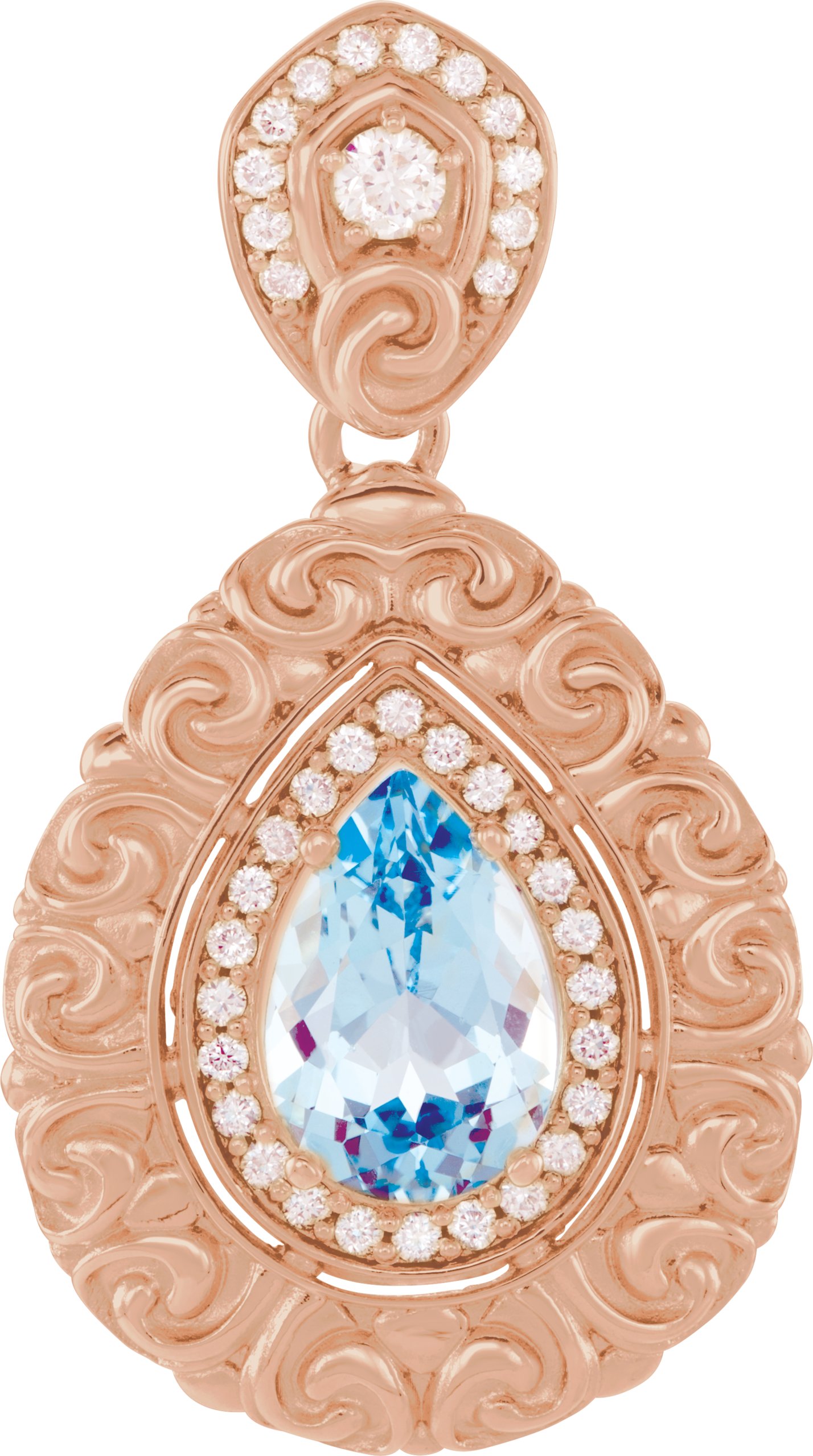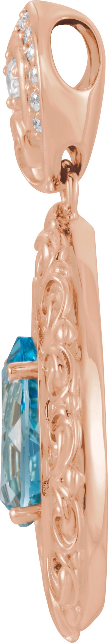 14K Rose Swiss Blue Topaz and .50 CTW Diamond Pendant